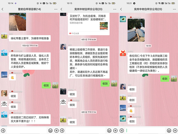 近期,新冠病毒德尔塔变异株的扩散传播,暴雨之后的郑州又面临一个重大考验,郑州市多地区被列为高风险、中风险地区,郑州市新冠肺炎疫情防控新闻发布会上,通报了郑州此次疫情的蔓延情况,就抓好抗疫防控研究部署了十三项工作。 兖州中材建设有限公司白坪分公司积极响应地方政府号召,立即就此次疫情召开全员会议,会议上对此次爆发的疫情严重性做了介绍,德尔塔病毒变异株传播速度快,传染性更强,应引起全体职工的高度重视,组织并学习了公司安全部下发的疫情防控工作的通知。并做出了以下几点要求: 一、严格把控进出口,加强个人疫情防护 登封市目前未通报有感染病例,要求我们时刻紧绷疫情防控这根弦,只有思想上不松懈,常态化疫情防控措施才能一贯到底,时刻保持警惕,才能筑建疫情防控壁垒。要求全体员工无特殊事情不外出,做好个人防护;勤洗手勤消毒,室内勤通风;不聚集;合理膳食,用公筷,分餐隔座饮食。准备充足防疫物资,并配合白坪乡煤窑沟村委封村工作把好出入口,做好值班工作。 二、宣传防控知识,核酸检测需重视 通过微信群,全面宣传疫情防控知识,进一步提高员工的防范意识,织牢疫情防控宣传网。 白坪分公司全体员工积极、主动配合郑州市三轮核酸检测,履行公民法定义务。 三、抗疫复工“两不误” 对外来人员做好登记,测量体温,查询行动轨迹,持健康码绿码进入矿区,为复工复产工作保驾护航。 随身携带口罩,工作期间佩戴口罩,增强自我保护意识。 |