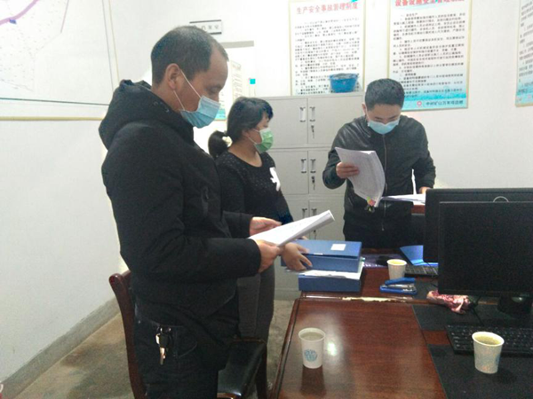 2020年3月12日下午,根据万年县疫期防控需要,万年县应急管理局领导到中材矿山万年分公司施工现场及办公室进行检查,主要检查了分公司疫情防控相关措施及汛期防护设施物资。