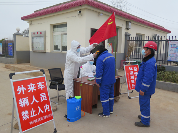 泗水分公司管理人员为职工测量体温