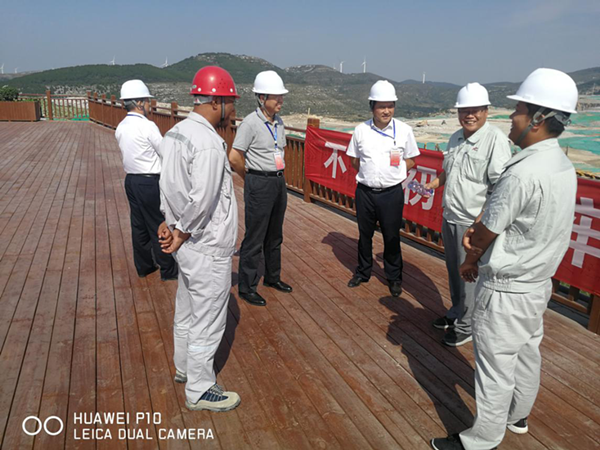 9月24日上午,中国建材股份副总裁、党委委员苏逵在公司总经理柯升、党委书记王中秋的陪同下,对平阴分公司的“不忘初心、牢记使命”主题教育活动开展情况进行调研。平阴山水党委书记侯福存、总经理助理江帅、分公司经理刘占中参加陪同。 苏逵一行首先参观了矿山,在260观景平台与业主领导进行了工作交流,平阴山水总经理助理江帅向苏逵介绍了平阴山水基本情况,并对水泥厂后续规划做了详细介绍。分公司经理刘占中向苏总详细介绍了矿山工作开展情况,