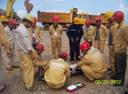 兖州中材宣威分公司现场救援应急演练 了加强广大职工安全意识,提高现场施工人员应对突发事故的能力,根据兖州中材宣威分公司制定的《土石方坍塌事故救援应急预案》,于2012年6月20日进行了救援应急演练。 本次演练的目的:是在突发事故发生时,现场职工知道怎样救援;救援的程序;明确救援负责人、救援报告人;如何在救援的过程中避免发生二次伤害等。 本次演练的主要内容是:演示不同的伤势所需要采取的相应的急救方法,和救援器械的使用方法,及紧急情况下利用现场不同的救援车辆担架上车的方法。力求以最快的速度、最安全有效的措施救援受伤人员。使事故的损失降到最低。 首先讲解了本次演练的目的、内容、注意事项。接着对急救包、担架的使用方法和主要事项进行了讲解和演示。肢体受伤后的简单处理、包扎方法进行示范。然后练习了紧急情况下,如何利用现场车辆救护伤员、和担架上车的方法。 在演练结束后所有参加演练的人员对整个演练过程进行了总结,讲述了各自对演练的看法并提出了演练过程中的不足之处及改进措施,使事故救援应急预案得到了进一步的完善。 通过本次演练使现场职工熟悉了救援程序和基本的救护方法。初步掌握了救援器械的使用方法和注意事项。有效的提高了职工的救护技能。达到了本次演练的预期效果