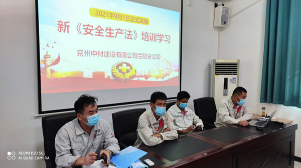 为了学习贯彻新《安全生产法》,使广大职工牢固树立安全生产理念,兰陵分公司在施工现场和办公生活区多处悬挂横幅标语,营造学习气氛,并于2021年8月18日上午8时起,组织全体员工进行新《安全生产法》的培训学习。