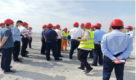 在现场的检查指导工作中,兖州中材项目经理康斌分别将现场施工情况及安全生产保障措施向市委市政府领导做了详细讲解,对在“国庆节”和“二十大”期间的安全生产做了详细的工作安排汇报,并对安全生产做出了保障承诺。