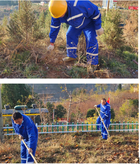 白坪分公司在3天内对所属区域的杂草、垃圾等进行集中清理。大家用割草机、镰刀、剪刀等清理绿化带、草坪上的杂草,用塑料袋袋、编织袋捡拾运矿道路、生产区域、边坡、路旁垃圾,对排水渠、洗车机等仔细清理;对项目部生活区荒地重新开垦复垦,全体人员热情高涨,干劲十足,分工协作,配合默契,全然不顾天气寒冷。