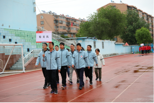 (兖州中材党委委员、副总经理颜景祥致词) 踏着激昂的运动员进行曲节拍,运动员们精神抖擞、斗志昂扬,排列着整齐的方阵,在旗手的引领下,喊着响亮的口号,依次有序地走过主席台。