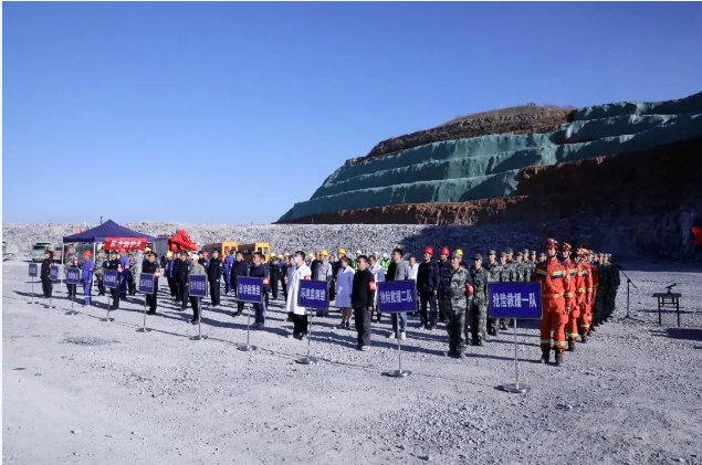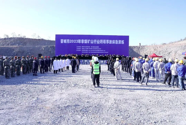 | 为进一步提升非煤矿山企业安全意识和应对突发事故的处置能力,晋城市 2023 年非煤矿山行业坍塌事故应急演练在晋城山水合聚水泥有限公司司家掌石灰岩矿(泽州分公司承建矿山)举行。晋城市应急管理局、县应急管理局、县委宣传部、县卫健局、县公安局、县气象局、县消防救援大队、县自然资源局、晋城市救援救护队、晋城市能源技术中心等 12 家单位120余人参与演练。市应急管理局三级调研员柳青、市应急管理局救援协调科邰建民、各县区应急管理局负责人、分管负责人、非煤矿山行业相关科室负责人及全市所有非煤矿山企业主要负责人等 130 多人现场观摩了演练。