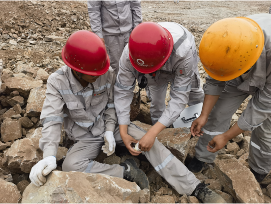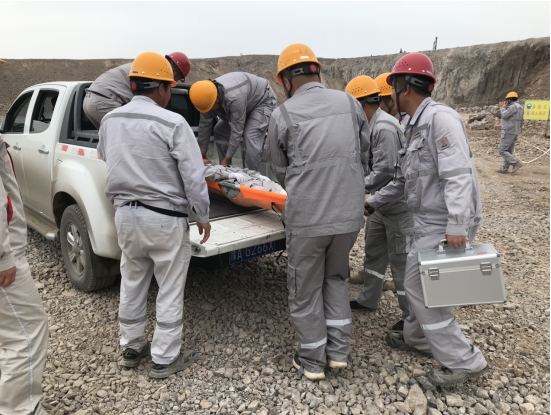 上午10时整,演练正式拉开序幕。假设情况是该露天矿山某区域发生了边坡坍塌,造成一名作业人员腿部受伤被困。接到报告后,项目副经理杨宇立即启动应急预案,迅速组织了由医疗救护组、应急抢险组、警戒保卫组、物资保障组等部门人员组成的应急救援队伍,携带救援装备,迅速赶赴事故现场。同时,通讯保障组也迅速建立起临时通讯网络,确保现场信息畅通无阻。