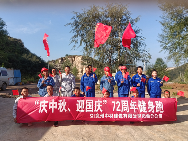 为丰富员工业余生活,提高员工身体素质,增强团队活力和凝聚力。2021年9月20日,兖州中材阳曲分公司组织全体成员开展了以“庆中秋、迎国庆”为主题的健身跑活动。  随着开跑的口令,参赛队友们手举国旗开心的开启了健跑之旅。  活动中,运动员个个生龙活虎、精神抖擞,盛装待发,随着号令一响,大家纷纷冲出起点,奔向目的地,并享受着运动带来的快乐。  每个运动员都汗流浃背,他们发扬了不怕苦、不怕累、团结合作的精神,大家互相鼓励,坚持就是胜利。活动全程共2.5公里。 健身跑达人们陆续跑完全程,抵达终点,健身跑活动圆满结束。  此次矿山健身跑活动为不计时跑步活动。 健身跑活动不仅营造了热烈喜庆的节日氛围,也让广大职工体验了运动的乐趣,缓解了压力,增强了凝聚力,更是激发了大家的工作热情,以更加优异的成绩迎接新中国成立72周年。