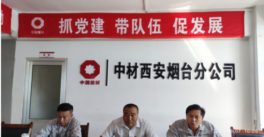 为进一步加强党建引领,落实新时代党的建设总要求,推动党的建设与公司发展同频共振,达到资源共享、共同促进的目的,根据中材矿山党发《关于中材矿山党委及所属公司党委委员联系支部(项目)共建点的通知》,2023年8月7日上午,兖州中材栖霞分公司与中材西安烟台分公司联合开展党建共建活动。中材西安副总经理王保存参加了活动。