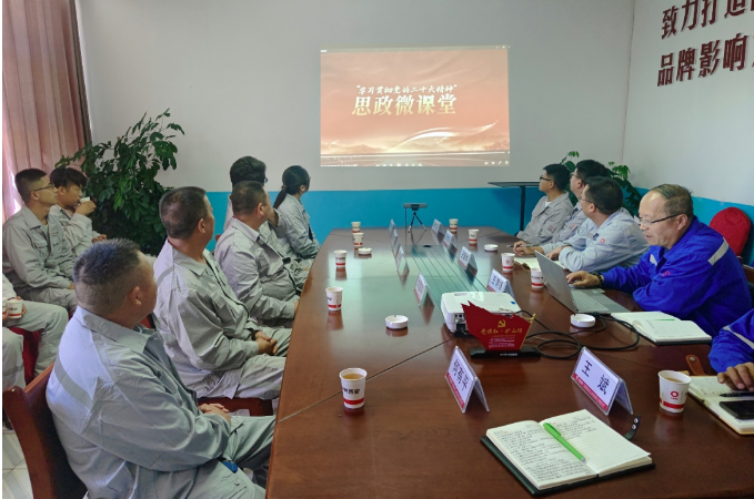 现场观摩结束之后,全体人员集中观看学习思政微课堂《学习贯彻党的二十大精神》。中材西安岢岚分公司经理王渭锋对分公司的生产情况做了简要介绍,参会人员就围绕安全生产、控制爆破、形象建设、生态恢复、危废处理、安全费用的提取和使用方面进行了广泛细致的交流。