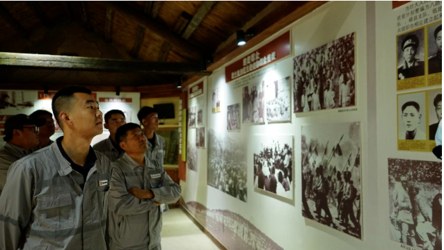 在八路军115师抱犊崮抗日纪念园,全体员工依次参观了八路军第115师纪念馆、115师政治部、王麓水纪念馆等红色展馆,认真研学抗日战争时期八路军英勇抗日的光辉事迹。一件件破旧而又珍贵的实物,一幅幅发黄而又宝贵的照片,一场场硝烟弥漫的激战场景,仿佛将大家带回到了那个激情燃烧、热血沸腾的战争年代,使大家深刻地感受到八路军不屈不挠的顽强意志和血战到底的英雄气概,思想灵魂受到了深刻的革命洗礼。员工们不时驻足观看,了解抱犊崮山区八路军队伍与山区人民军民鱼水情深的感人故事,重温战火纷飞的峥嵘岁月,展厅内陈列的老照片以及战场上使用的枪支弹药无不提醒着我们要牢记革命历史。